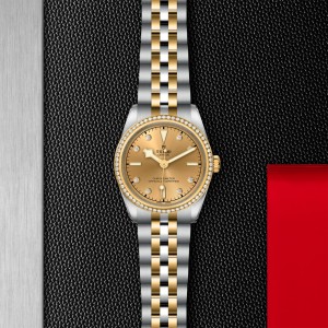 首節中間鏈節由精鋼或實心黃金製成;其餘中間鏈節由鋼芯及0.2毫米黃金包金製成;帝舵表「T-fit」摺扣,配安全扣;帶扣上的標誌以實心黃金打造