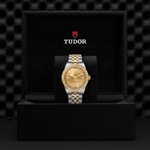 首節中間鏈節由精鋼或實心黃金製成;其餘中間鏈節由鋼芯及0.2毫米黃金包金製成;帝舵表「T-fit」摺扣,配安全扣;帶扣上的標誌以實心黃金打造