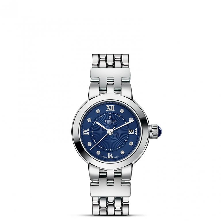 Clair de Rose系列重新演繹,秉承古典優雅及永恒經典的精神,善用品牌名垂青史的美學特色。Clair de Rose系列僅以不銹鋼製成,備有六種配置和三種不同尺寸,錶殼直徑分別為26、30及34毫米,蛋白色錶面飾有精美的浮雕圖案,以藍色漆面羅馬數字或鑽石作為鐘點標記。今年,Clair de Rose的所有尺寸均可選配新款「帝舵藍」錶面。
