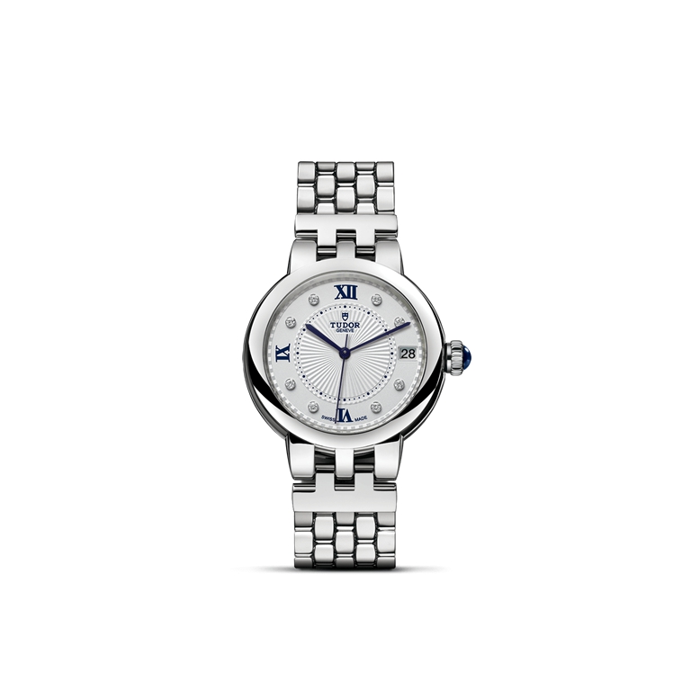 Clair de Rose系列重新演繹,秉承古典優雅及永恒經典的精神,善用品牌名垂青史的美學特色。Clair de Rose系列僅以不銹鋼製成,備有六種配置和三種不同尺寸,錶殼直徑分別為26、30及34毫米,蛋白色錶面飾有精美的浮雕圖案,以藍色漆面羅馬數字或鑽石作為鐘點標記。今年,Clair de Rose的所有尺寸均可選配新款「帝舵藍」錶面。