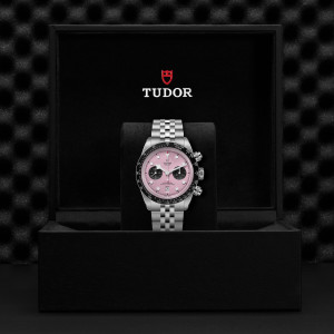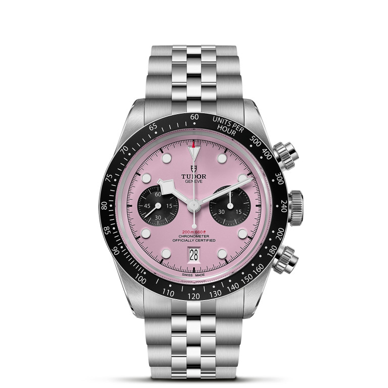 混合型Black Bay Chrono將Black Bay系列代表的潛水錶傳統與賽車計時錶的精髓相結合。鋼錶殼保留了Black Bay系列的顯著特徵,其按鈕的設計靈感則源於第一代帝舵計時腕錶。固定外圈設有測速計刻度,使這款運動型計時腕錶的外觀更趨完備。