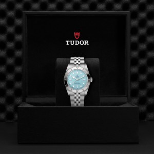 Black Bay 54近乎忠實地復刻了品牌首款潛水腕錶7922型。經典的37毫米錶殼延續了原始比例。但在復古的外觀下,它又以帝舵表原廠單一計時機芯MT5400型及200米的防水深度,彰顯了與時俱進的卓越技術實力。「湖水藍款」特別版啟發自熱帶碧海色彩,搭配沙質「湖水藍」錶面、五鏈節錶帶及鏡面磨光外圈。