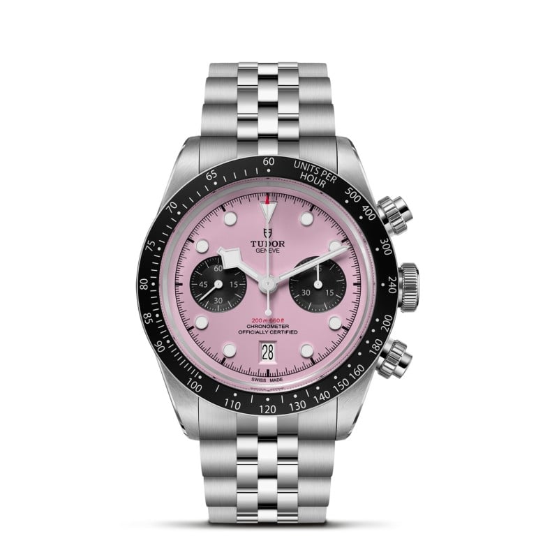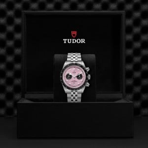 混合型Black Bay Chrono將Black Bay系列代表的潛水錶傳統與賽車計時錶的精髓相結合。鋼錶殼保留了Black Bay系列的顯著特徵,其按鈕的設計靈感則源於第一代帝舵計時腕錶。固定外圈設有測速計刻度,使這款運動型計時腕錶的外觀更趨完備。